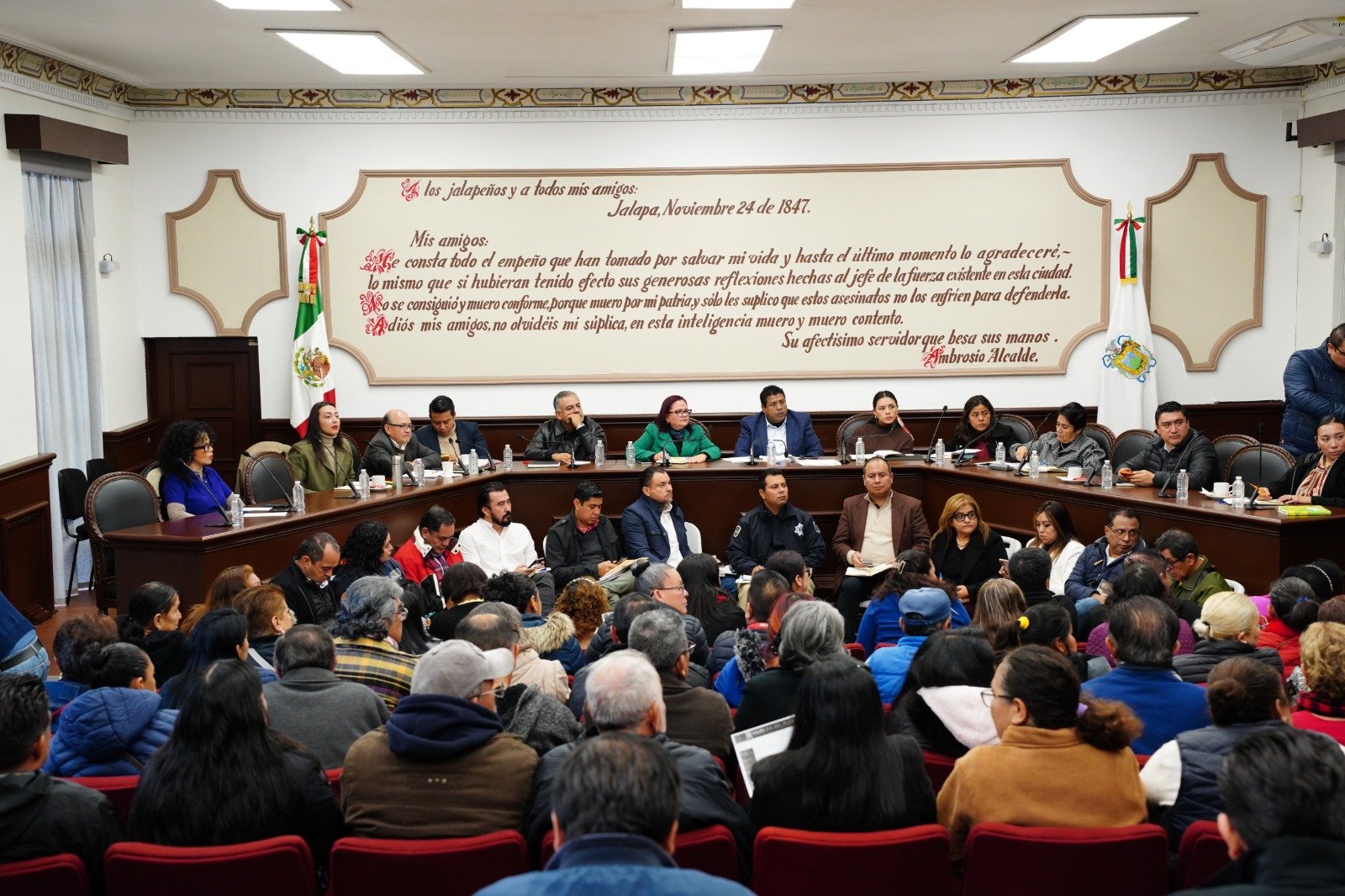 El Secretario del Ayuntamiento, Mtro. Víctor Hugo Meza Cruz; la Regidora Primera, Lic. Diana Julieta Aguilar Ortega; el Regidor Segundo, Lic. Axel Fernández Cambambia; la Regidora Tercera, Lic. Susan Liliana Morales Segura; el Regidor Cuarto, Lic. Alfonso Osegueda Cruz; la Regidora Quinta, Lic. Raquel Rosalía Castañeda González, y la Regidora Sexta, Lic. Hilda Elvia Aguilar Arroyo, estuvieron tomando nota de las necesidades expuestas.